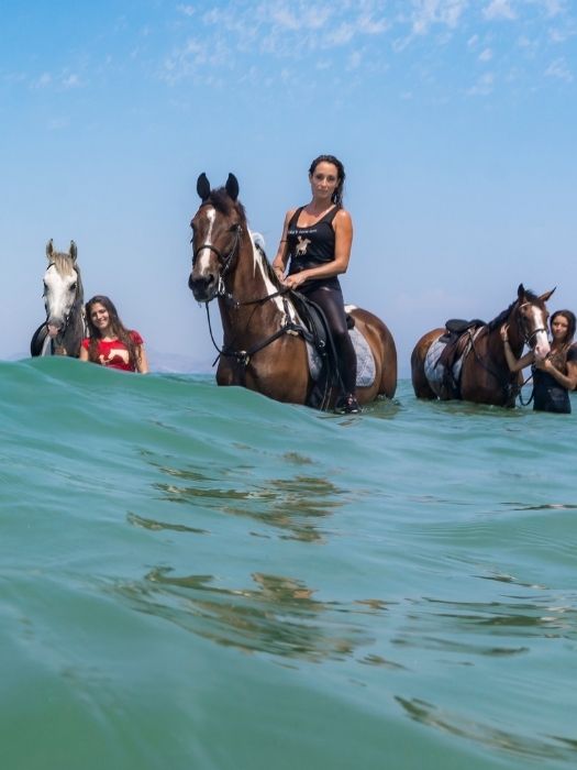 You’ll feel an incredible sense of freedom and joy as you ride at a faster pace and cool off by swimming with your horse in the sea.