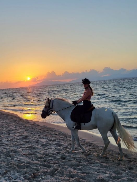 Advanced riders can elevate their riding experience by going on a 1.5-hour ride in the morning or at sunset. This ride allows you to gallop and even swim with the horse.