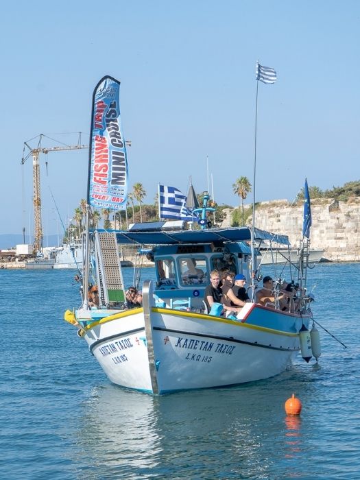 As you depart, you’ll feel the excitement grow as the captain takes you further into the beautiful blue waters of the Aegean Sea in the Lambi region.