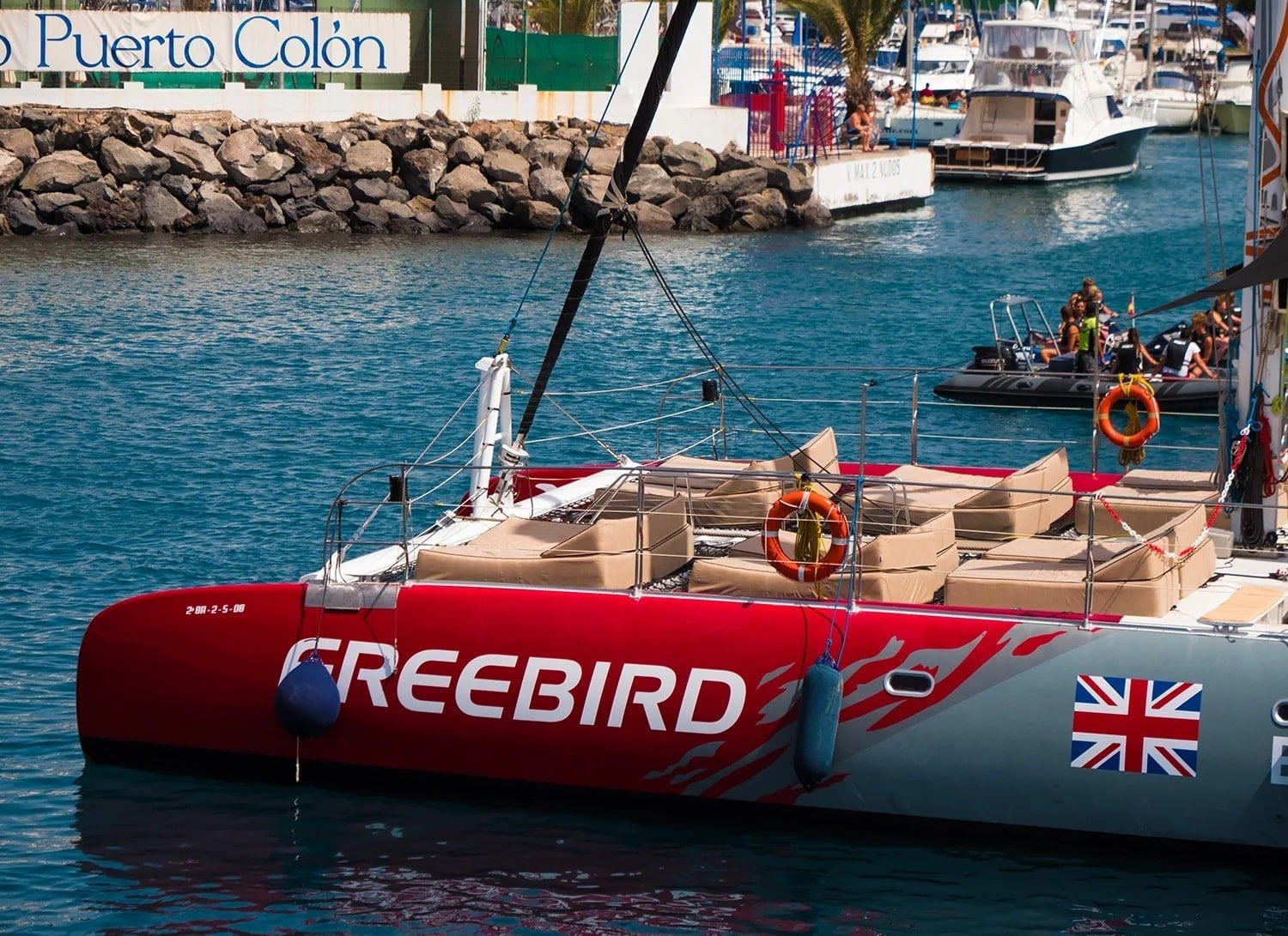 Freebird boats depart from and return to Puerto Colón in Costa Adeje, Tenerife.