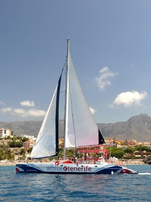 White Tenerife catamaran provides informative all-inclusive whale and dolphin watching tours lasting 3, 5, or 6 hours with its two boats.