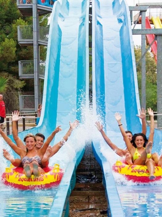 Families particularly love Aqualand; there are so many slides where the family can ride together. You can take the Lazy river or the Crazy river, the Kamikaze or enjoy the Wave Pool.