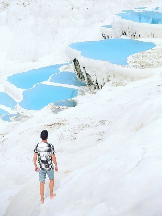 The snow-white travertine pools filled with clear turquoise water, incredible views of nature, Cleopatra’s hot water pool, the ancient buildings in Hierapolis and the unbelievably white coastlines of Lake Salda will leave an unforgettable impression on you.