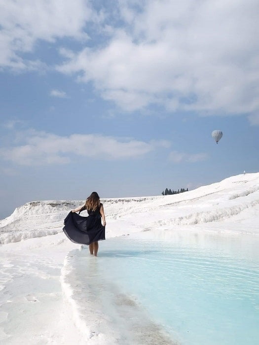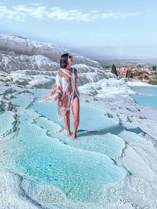 Pack good walking shoes, swimsuits, sunglasses, and towels. A sun hat is also essential, as there is no shade while climbing the travertines.