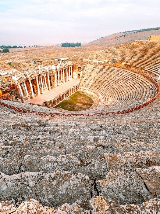 At the top of the travertines, you can enjoy the ancient city of Hierapolis, where Roman baths, museums, ancient streets, ancient theatre, ancient collumns and agoras will transport you to the past.