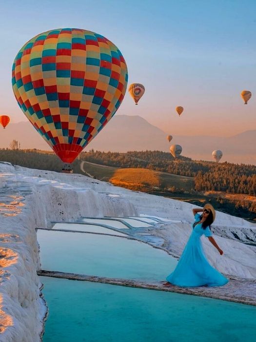 Hot air balloon in Pamukkale fly at sunrise, so it’s not possible to join them in the day trips. However, you can go paragliding while you are at the site.