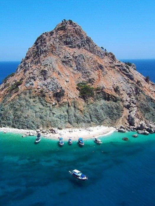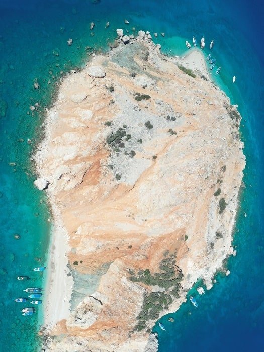The beaches on Suluada are well worth the glorious boat ride and as you reach the shores you will be treated to views like no other in this part of Turkey. Suluada in English means ‘watery island’ and whilst this may be stating the obvious (after all, all islands are surrounded by water) it is so named because of the natural springs on the Island that are a source of fresh water. Surprisingly the Island itself is rocky but this provides a dramatic backdrop to the snowy white beaches and the dazzling blue of the sea.