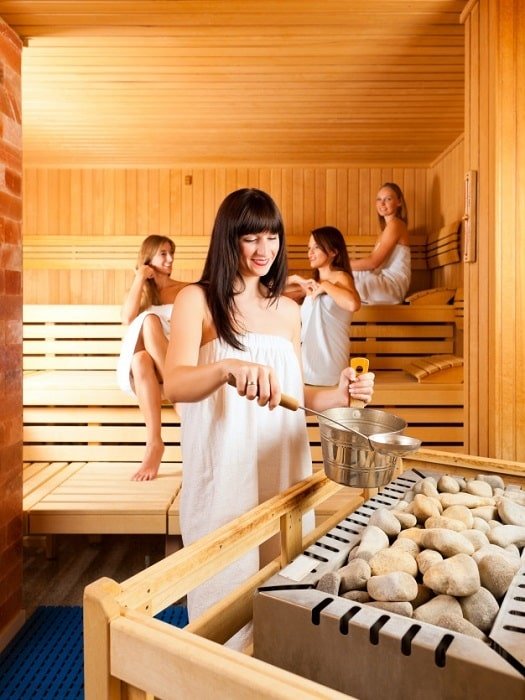 • Start with a sauna to open pores, then enjoy a body scrub and foam massage on a heated marble stone.