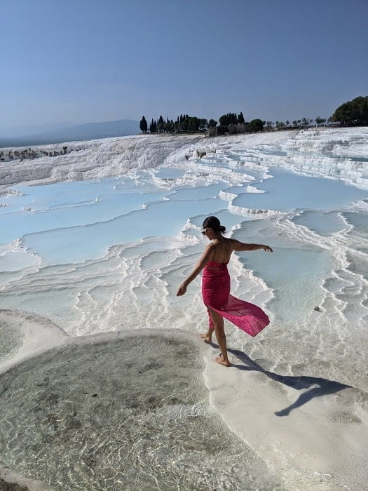 The rock pools are formed by calcified water over the centuries.  You can swim in the deeper pools or simply cool your heels as you walk through the shallow.  A slow leisurely climb and you will reach the gardens and the  Roman bathhouse museum.  From here to the ancient Cleopatras Pool (and yes the ancient queen is alleged to have spent time here) you can take in the ambience along the way.   The pool waters are a hot 36 degrees, said to cure many ailments from kidney or liver disease to heart and skin conditions.  Cleopatra may have taken the healing waters, but today the discerning tourist can walk in the footsteps of ancient royalty.
