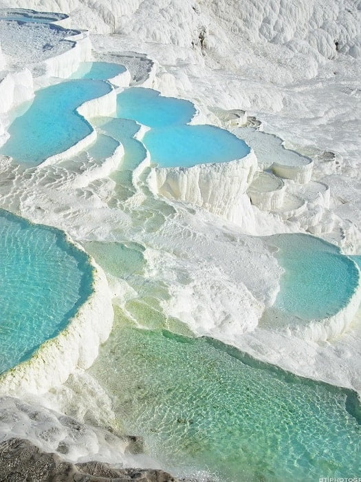 Footwear of any kind is not allowed to be worn while climbing the travertines.  This is to protect the rocks and keep them white.  One of the other known place in the world where you will find these calcified rocks is in Yellowstone Park in the USA.  The wearing of footwear causes discoloration of the travertines thus Turkey is the only place in nature where you will find this amazing wonder of nature.