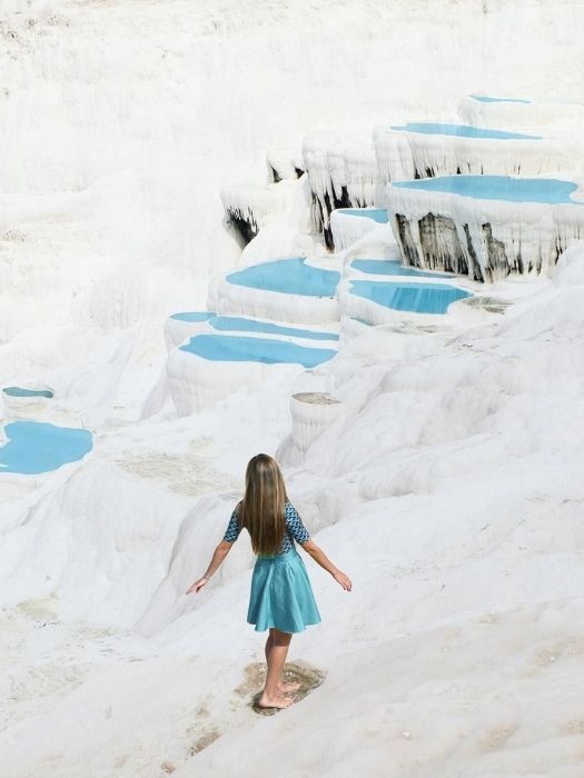 • Admire the beautiful white rock formations and water pools in Pamukkale.